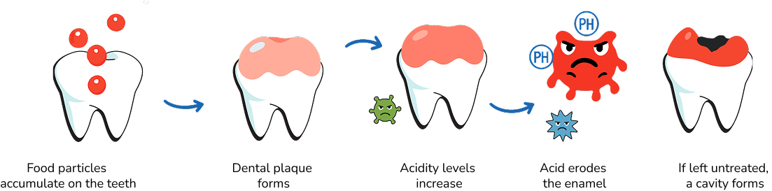 The main enemy of dental health is the Streptococcus mutans bacteria. These bacteria thrive on sugar, producing an acid that destroys tooth enamel and causes cavities